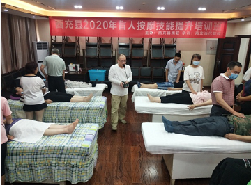 2020年盲人按摩技能提升培训班,是西充县残联关心关爱特殊视残群体,和南充当代职校联合举办的专项培训班,目的在于帮助盲人按摩从业人员进一步提升专业技能和服务水平,提高行业竞争力和抗风险能力,扶助视残群体在脱贫奔康路上稳步前行。来自全县各盲人按摩店的27名从业者于6月1日开始参加了为期4天的集中提升培训。