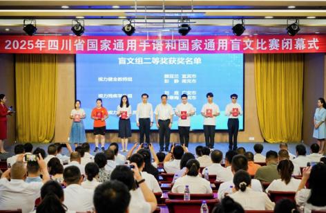 7月30日,由省残联、教育厅、省语言文字工作委员会联合主办的四川省2025年国家通用手语和国家通用盲文比赛在乐山开赛。来自全省21个市(州)及4所高校的122名选手齐聚一堂,以手为语、以文为媒,展现国家通用手语和盲文的规范应用与独特魅力。比赛共设置6个组别,每个组别设一等奖1名、二等奖2名、三等奖3名,均以个人赛形式进行,我市精心选拔4名选手参赛,经过激烈比拼,斩获佳绩。