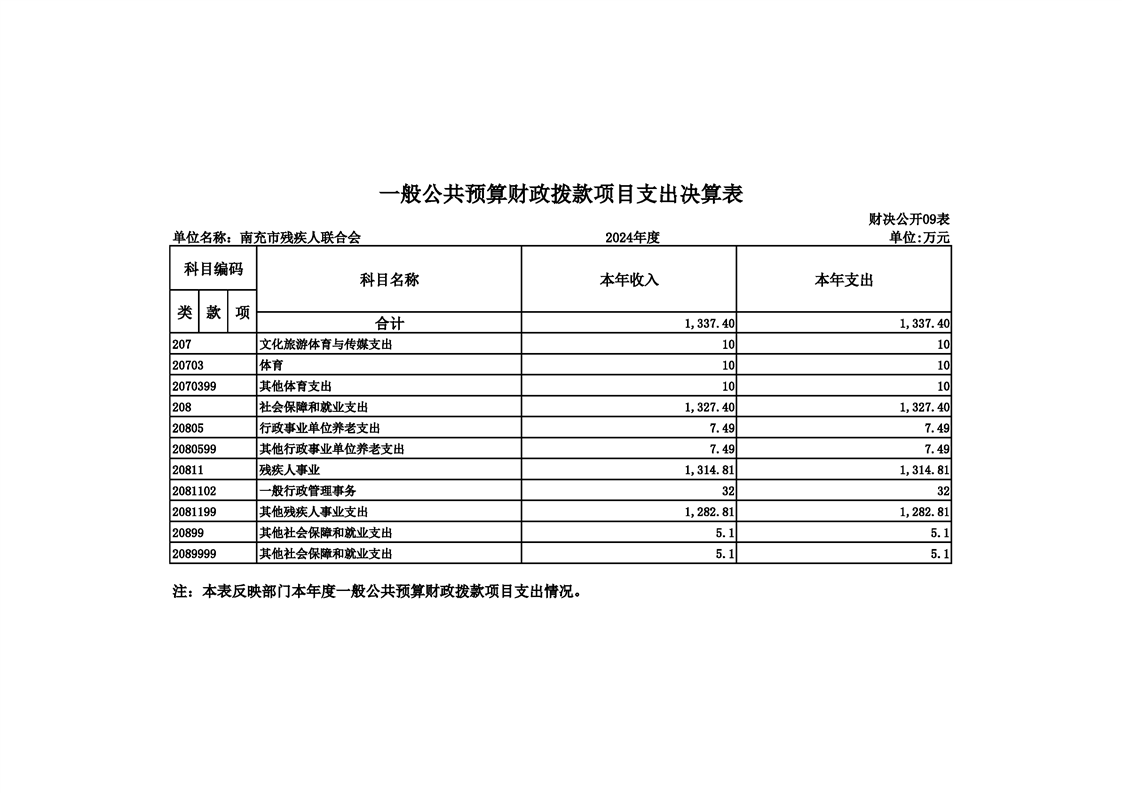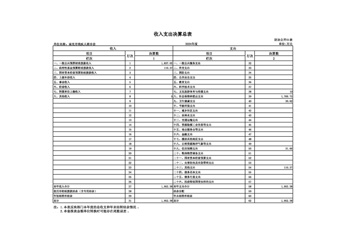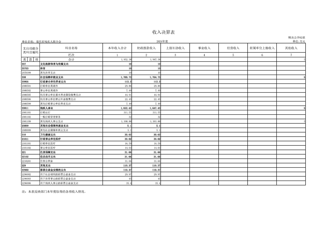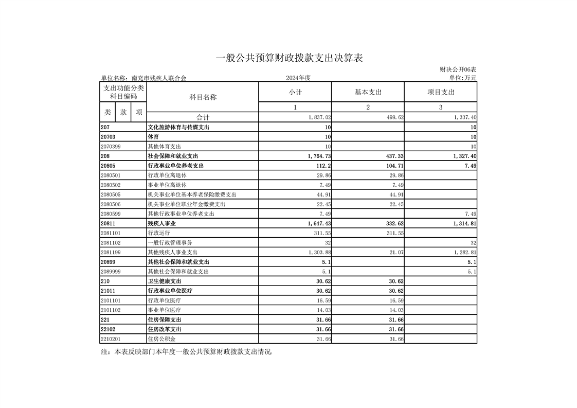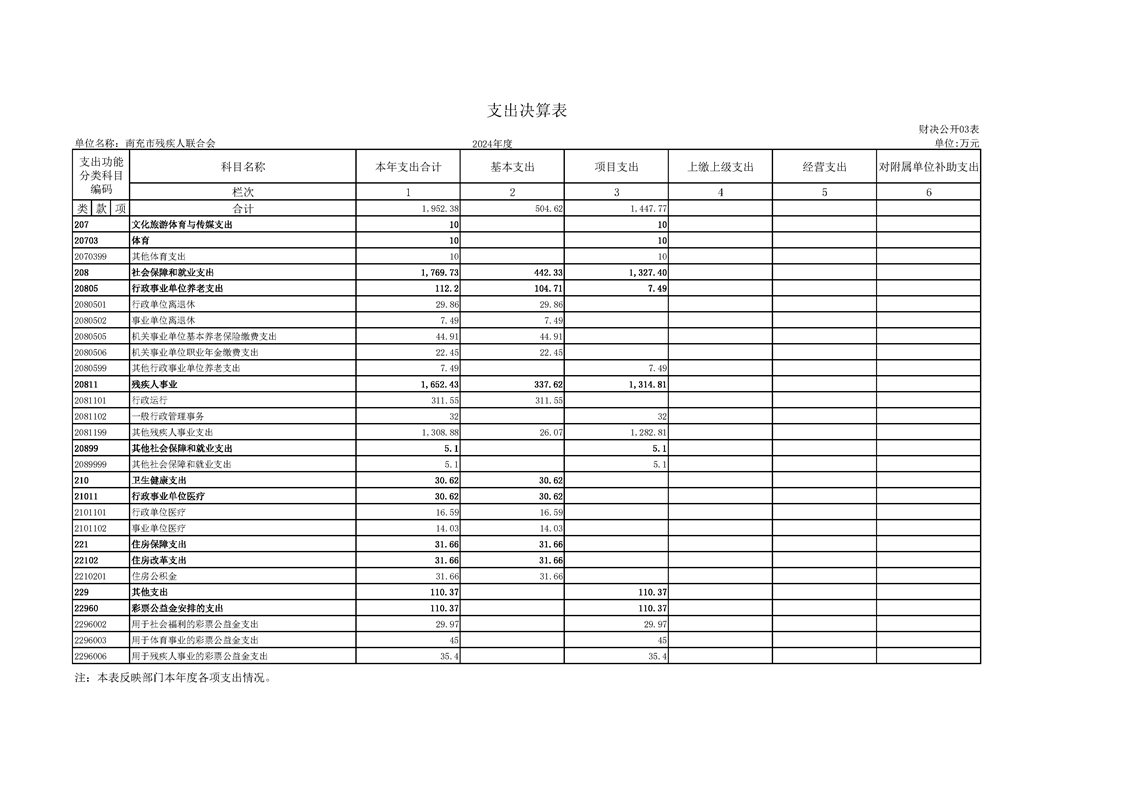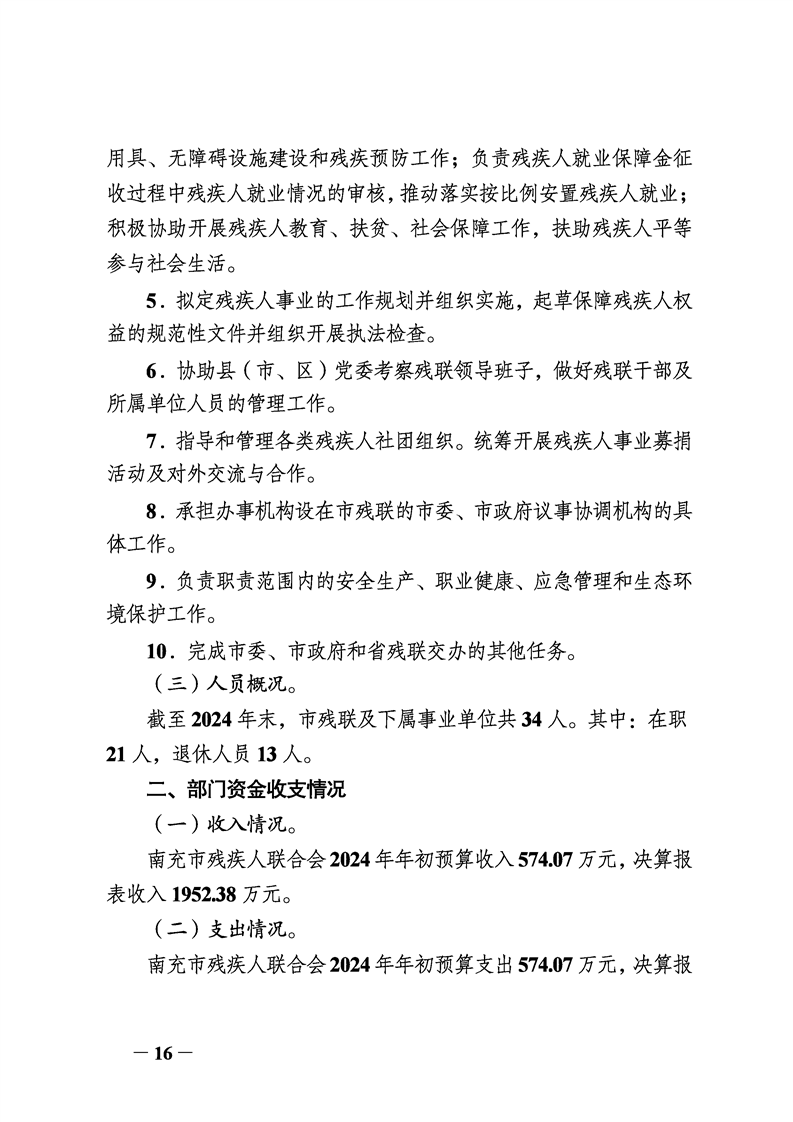 2024年度南充市残疾人联合会决算公开