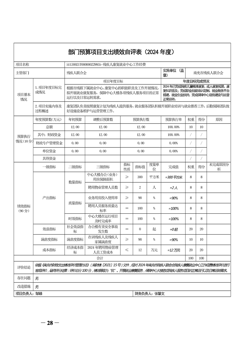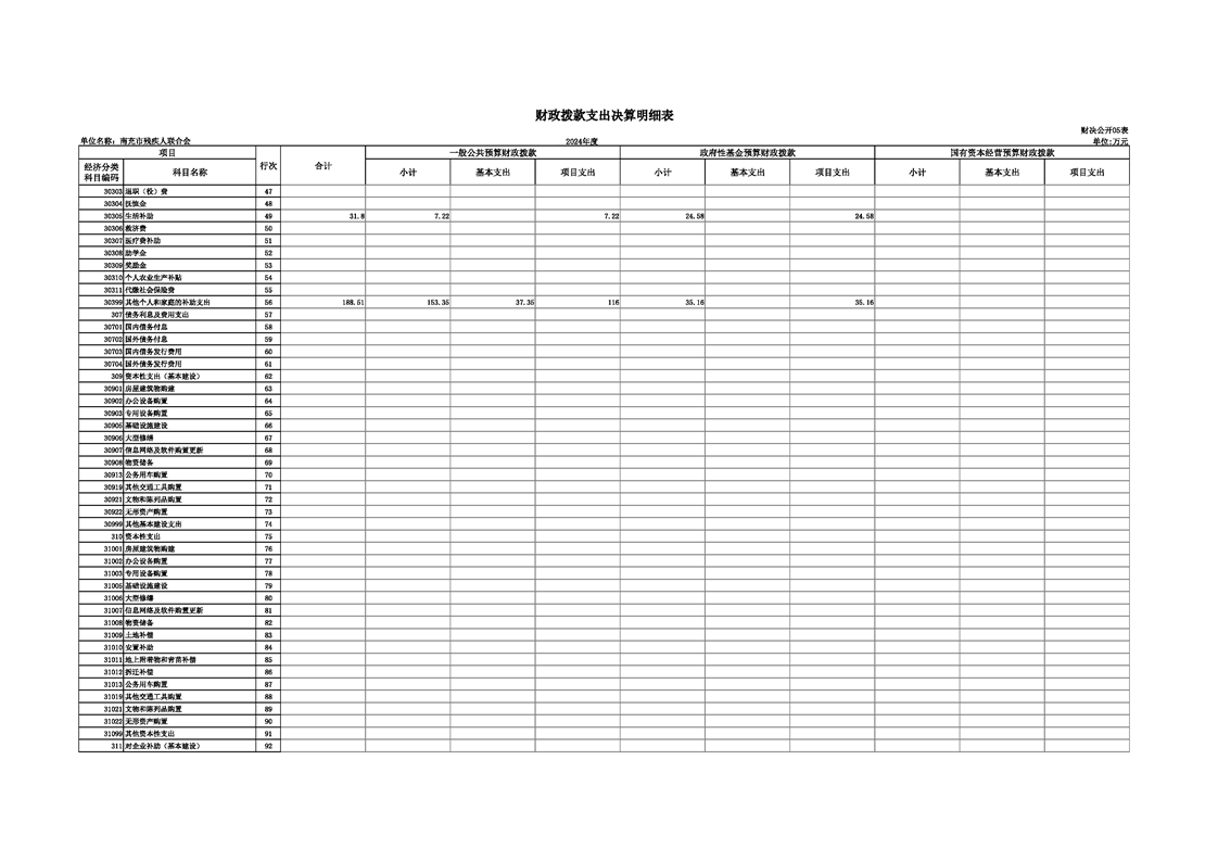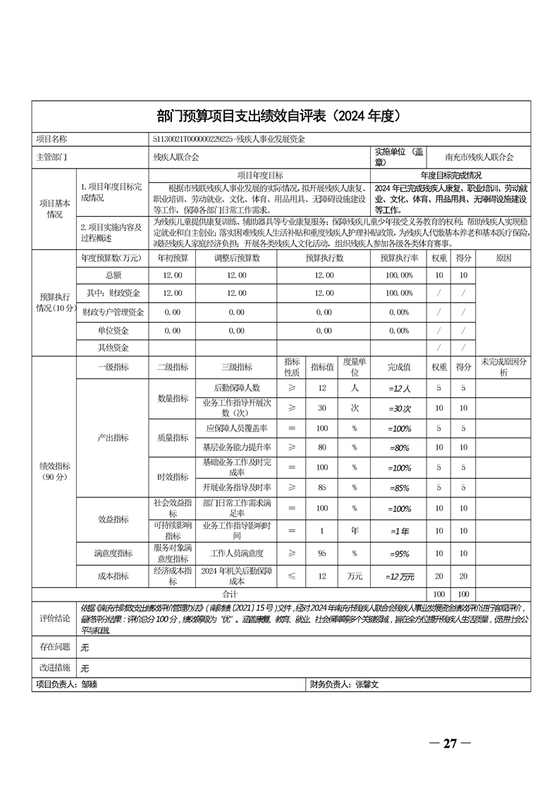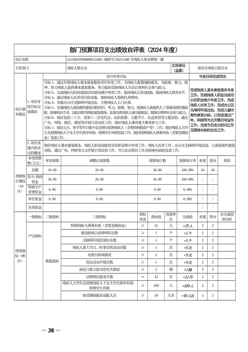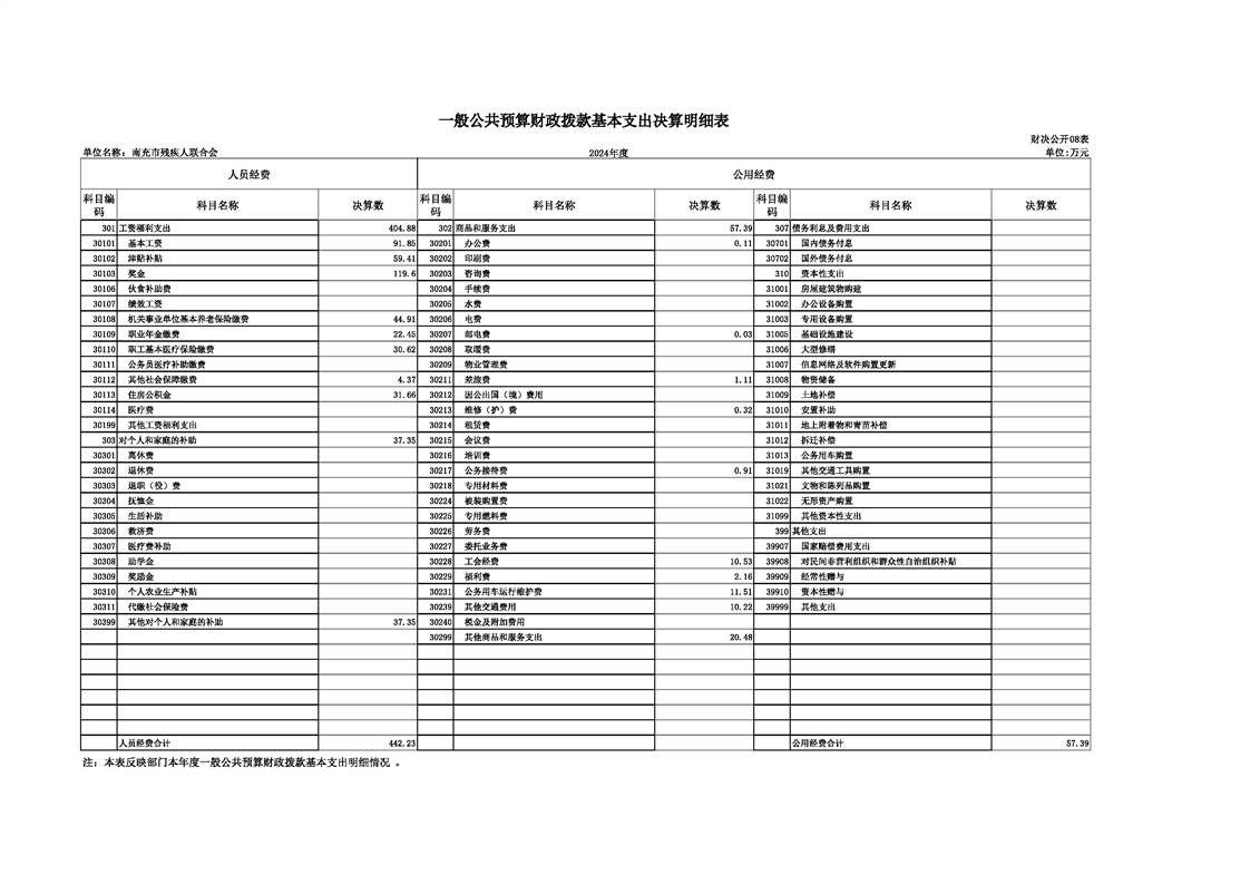 2024年度南充市残疾人联合会决算公开