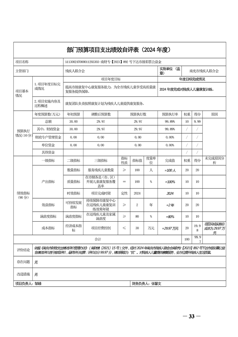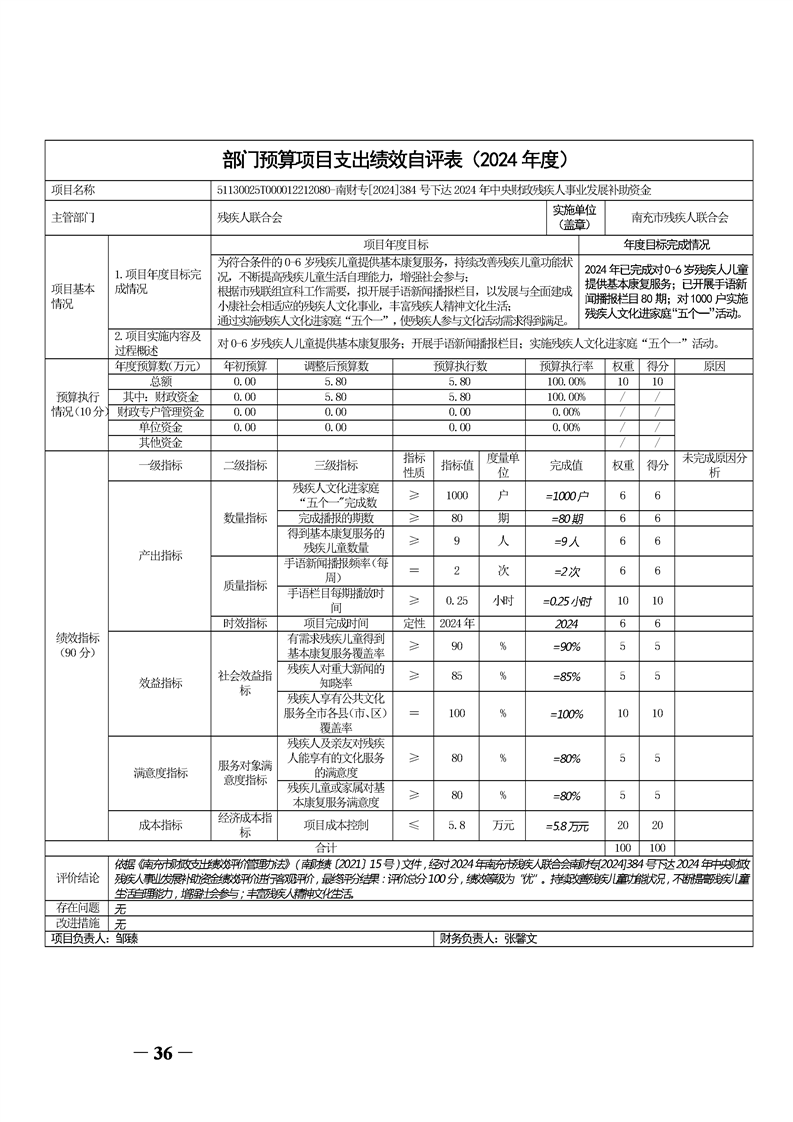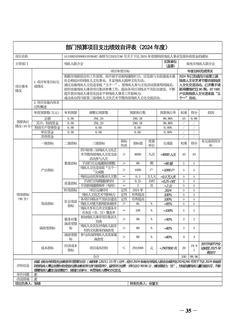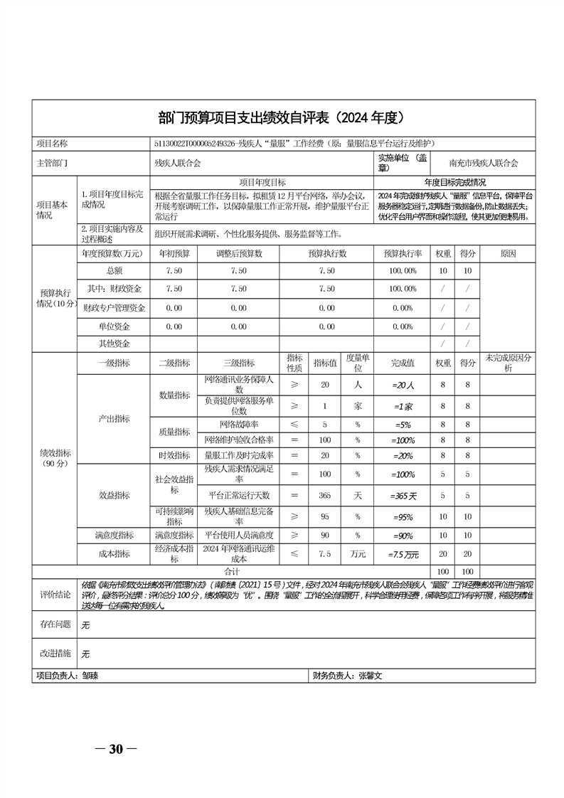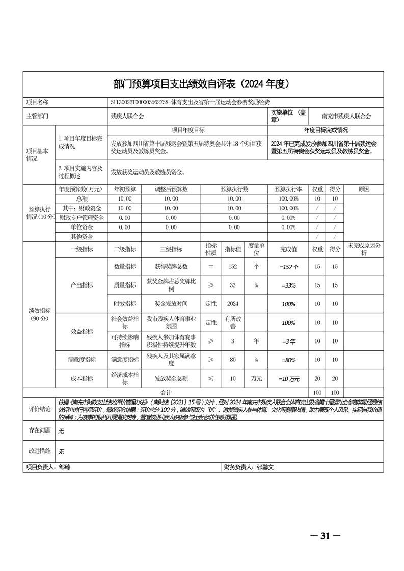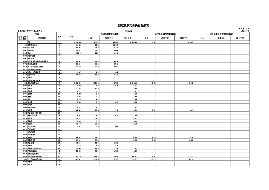 2024年度南充市残疾人联合会决算公开