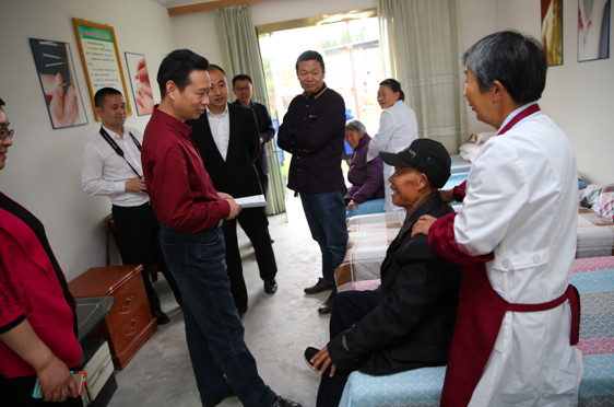 李理事长在相如镇白玉片区泰和玉都康复站看望正在康复训练的残疾老人