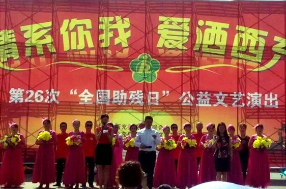 在第26次全国助残日来临之际,西充县残联早谋划、细方案,助残活动有条不紊的展开。 关爱孤残儿童,让爱洒满人间。5月9日上午,残联理事长王文春同志前往特殊教育学校看望慰问孤残儿童,为50名残疾儿童和39名教职员工送上了牛奶及生活用品,并与学校领导及教师们座谈。 为行动不变的孤残老人上门办证。5月10上午,县残联工作人员前往老年公寓为孤残老人办理第二代残疾人证。在办证现场,办证人员到坐着轮椅车和卧床不起的老人跟前,详细询问老人的基本情况,与他们拉家常,做宣传,老人们的脸上挂满了笑容 ,当天共为9名孤残老人办理了二代残疾人证。 载歌载舞共享阳光,扶残助残情暖西充。5月11日上午8:30时,纪信广场艳阳高照,人头攒动,广场中心靓丽喜庆的舞台,彰显出今年全国助残日浓浓的氛围,我县第26次全国助残日公益文艺演出拉开了序幕。本次活动由县残联主办,县职工老兵文艺宣传队,县特殊教育学校承办。县政府领导及残工委成员单位领导、各乡镇残联理事长、助残企业代表、残疾人代表及社会各界人士800余人观看了演出。副县长蒲永红同志作了热情洋溢的致辞,肯定了我县残疾人工作取得的长足进步,要求各级党委、政府和广大干部群众一定要从全面建设小康社会的高度,从解决事关残疾人切身利益的问题入手,以强烈的事业心和责任感,稳步推进残疾人社会保障体系和社会服务体系建设,逐步形成政府主导、社会参与、部门配合的有效运行机制,使我县残疾人事业在新的征途上更好更快发展。蒲永红县长为我县8户残疾人创业(就业)示范基地授牌,残疾人代表黄永波同志代表授牌企业作了发言。助残日文艺演出分为歌舞、小品、独唱、情景剧等十二个节目,内容丰富贴近生活,特别是特殊教育学校孤残儿童表演的《彩虹的约定》、《爱的世界》展现了残疾人对幸福生活的憧憬和对社会关爱的回馈。感染了台下的每一位观众,观众眼框中充满了泪水。 文艺汇演后8家助残爱心企业开展了残疾人就业招聘活动,为残疾人就业搭建平台,提供了就业机会,现场意向招聘残疾人27名。 本次活动得到了西充县阳光志愿者协会的大力支持!