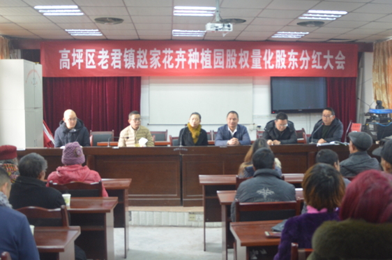 2018年1月11日上午,市残联党组成员、副理事长向健,教育就业科长丁健一行,莅临高坪区老君镇,现场指导我区赵家花卉种植园股权量化股东第一次分红大会。