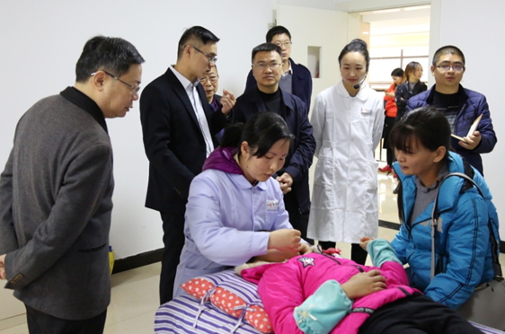 德阳市残联一行实地查看了西充县残疾人康复中心设施情况,参观了辅具展示厅、阳光无障碍影院及脑瘫、智障儿童康复训练室,详细听取了南充友爱康复医院工作人员的情况讲解,并且与康复治疗师和正在接受康复治疗的脑瘫、智障儿童家长进行了交流,对西充县残疾人康复中心运行及残疾儿童康复服务给予了高度评价。