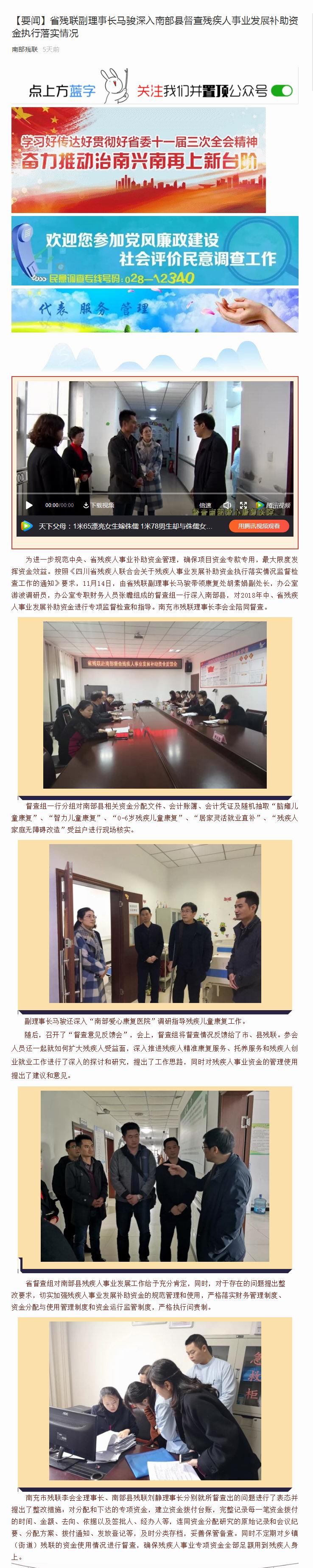 省残联理事长马俊深入南部县督查残疾人事业发展补助资金执行落实情况