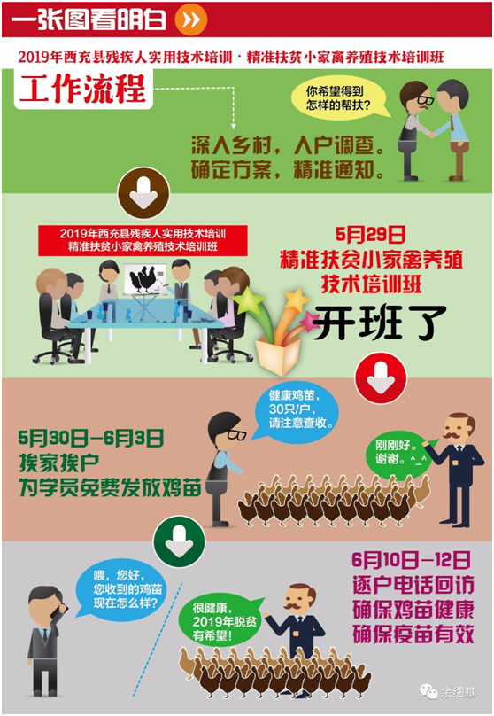 这是6月10日至12日,南充市金品质职业技能培训学校工作人员电话回访的对话情景。电话回访的对象,是参加了2019年精准扶贫小家禽养殖技术培训班的西充县贫困残疾人家庭。