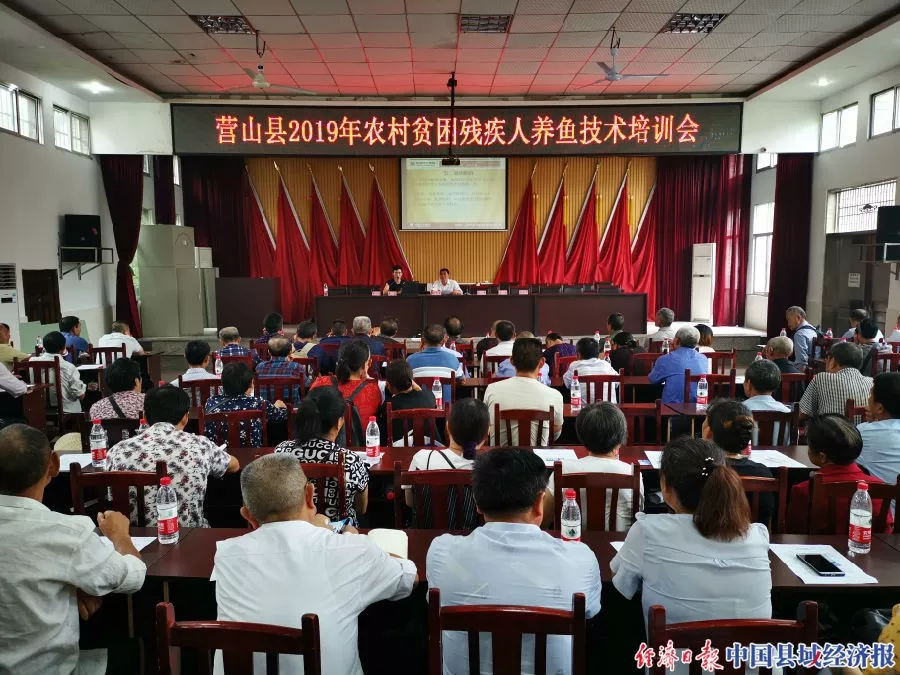 19日的营山县城,气温异常闷热。从早上八点开始,城南镇的会议室外面就陆续有了一些残疾人的到来。今天,2019年营山县残联养鱼技术培训班将在这里开课。全县185名养鱼的残疾人从县域的四面八方赶到城南镇政府,共同聆听了行业专家的精彩分享。什么是鱼密度、鱼饲料什么时候投、怎么预防鱼生病、销路怎么找···一系列扎实而贴切的知识让参加学习的残疾人朋友直呼“残联送来了科技及时雨”。