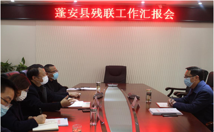 3月18日,蓬安县人民政府副县长孙超到蓬安县残联调研残疾人工作。蓬安县残联党组书记、理事长陈爱民和班子成员陪同调研。