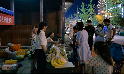 6日晚8时许,笔者在现场看到,一排“爱心小桌”排放整齐,桌上摆满了各式各样的农特产品。各类产品吸引着出入小区的居民驻足观看,时不时的一些爱心人士把心仪的产品买下来带走。