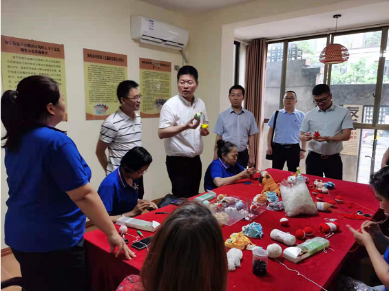 在保宁街道王家嘴残疾人钩针编织基地,张升看望了正在进行钩针编织的基地员工,就钩针编织产品创意、设计、开发、线上线下销售、市场竞争及发展前景等进行了交流互动。