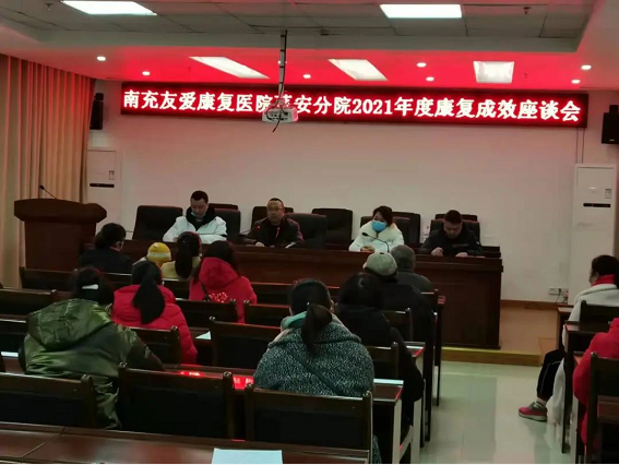 1月13日,南充友爱康复医院蓬安分院召开2021年度康复成效座谈会。蓬安县残联党组成员、副理事长刘天国同志出席会议并讲话,全体在训儿童家长参加会议,会议由友爱康复医院蓬安分院院长陈良同志主持。