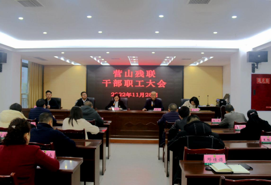 11月28日下午,营山残联在机关二楼会议室召开新任领导干部见面会。县委组织部部务委员、办公室主任文敏出席会议。会议由县残联党组书记、理事长何德一主持,全体干部职工、机构、中心、基地、五大协会负责人参加会议。