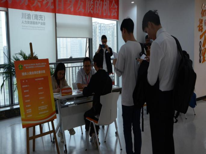 双选会现场还提供了就业服务区,邀请了四川两个柒商务电子商务有限公司、南充通源汽车、南充德进科技等企业现场招聘。安排了就业指导师,给参会的残疾人求职者提供就业、培训、职业指导、招聘指南等相关问题咨询服务和需求登记服务;并邀请手语老师帮助听障求职者与招聘单位进行沟通,让用人单位和残疾人求职者无障碍沟通,用心用情促进就业。