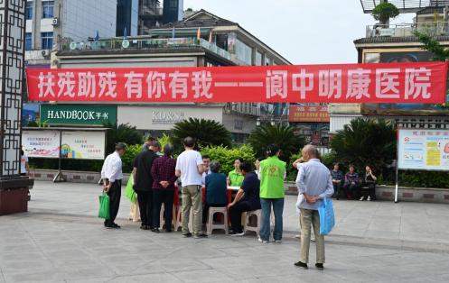 阆中市人民医院等医疗卫生机构和聪茂助听等单位组织医务人员和工作人员现场进行测血压、健康检查、残疾预防等义诊义检活动,并向到场市民发放健康知识宣传资料。