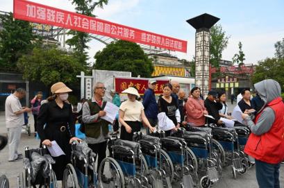 阆中市残联现场向一批重度肢体残疾人发放了轮椅。叶明松勉励广大残疾人自立自强,乐观奋进,感谢残疾人家属的辛勤付出,呼吁社会各界广泛传递“平等、融合、共享”的新时代残疾人事业价值理念,关心关爱残疾人兄弟姐妹,共创共享幸福美好生活。