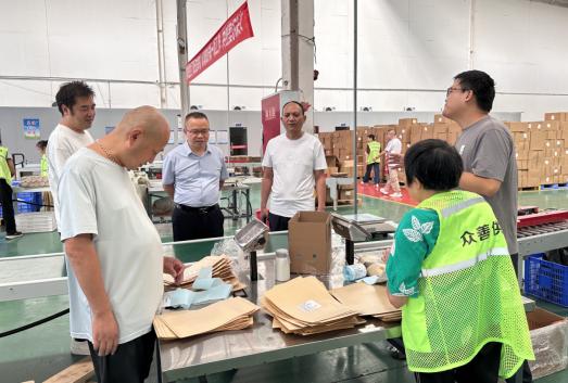 为持续推进高坪区残疾人辅助性就业机构规范化建设,促进残疾人更加充分的就业,9月15日上午,高坪区残联党组书记、理事长屈国虎一行到南充市众善供应链管理有限公司对残疾人辅助性就业机构建设进行现场指导。期间,一行人先是听取机构现场负责人介绍残疾人辅助性就业开展情况,然后又详细查看了机构运行情况,重点查看了为残疾人员工量身定制的快递面单打印核对、面单张贴、货物分选包装等工作岗位的运行情况。